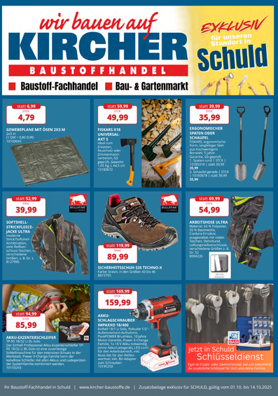 Vom 1. bis 14. Oktober gibt es zusätzlich zu unserer Baustoff-Beilage ein spezielles Prospekt für unsere Niederlassung in Schuld.
